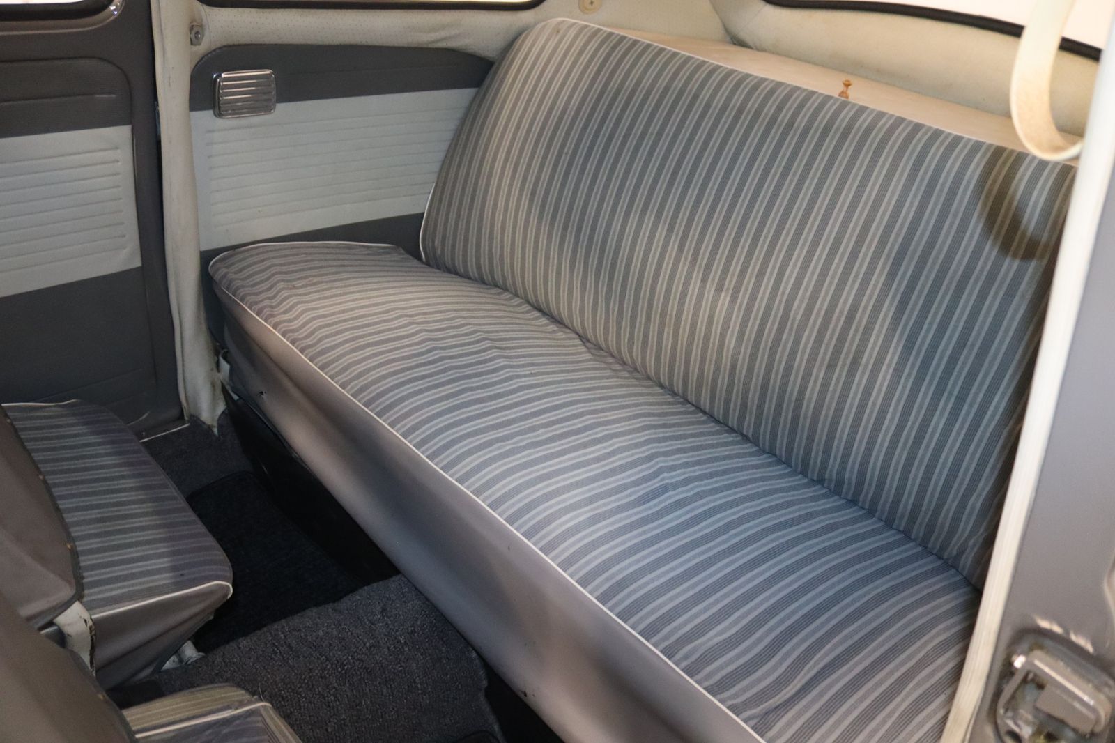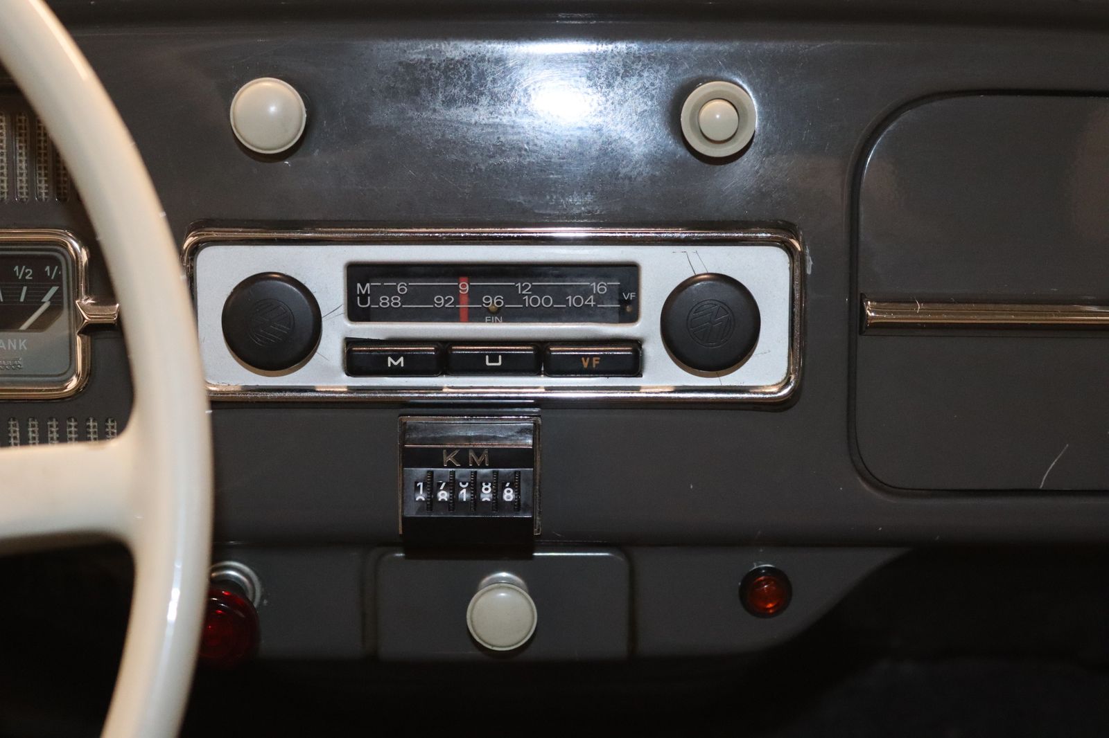 Der Wagen präsentiert sich optisch in einem schönen, glänzenden Lackkleid mit gepflegten Chromdetails. Die Karosserie befindet sich in einem sehr ordentlichen Zustand. Der Innenraum ist sauber und stimmig erhalten – mit dem klassischen Armaturenbrett und dem großen Original-Lenkrad, das sofort nostalgisches Flair vermittelt.